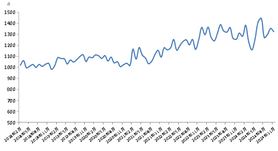 新華財經北京12月11日電(陸子琛、馬兵)11月份,新華·中鹽食用鹽(商超)價格指數報1323.81點,較上期(2024年10月)下跌28.93點,跌幅2.14%;較基期(2018年1月)上漲323.81點,漲幅32.38%;較周期內最高點1445.75點(2024年7月)下跌121.94點,跌幅8.64%;較周期內最低點981.91點(2018年12月)上漲341.90點,漲幅34.82%。