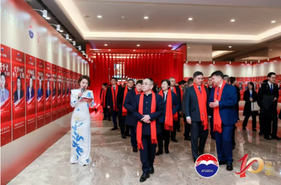 會前,出席活動的領導嘉賓、經銷商代表還一同參觀了醬香酒公司產品展陳和文化展陳,通過“2014—2024,我們的醉美拾光”茅臺醬香大事記、“承文化根脈·揚醬香美韻”品牌推廣活動集錦、公益領域品牌建設情況、十年人物展以及員工藝術作品展等,深入了解醬香酒公司十年櫛風沐雨、砥礪奮進的發展歷程。