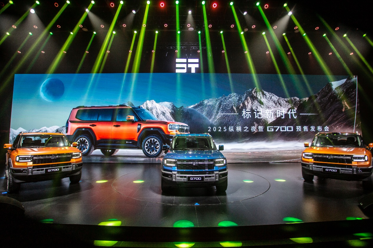 9月19日,“標記新時代”2025縱橫之夜暨G700預售發布會在上海舉行。本次活動揭曉了“全領域豪華電混越野SUV”G700的全球預售信息,新車共推出4款配置,預售價區間為34.99萬元至42.99萬元。G700以“更硬核、更豪華、更智能、更尊享”四大核心優勢,致力于重新定義豪華越野標準。