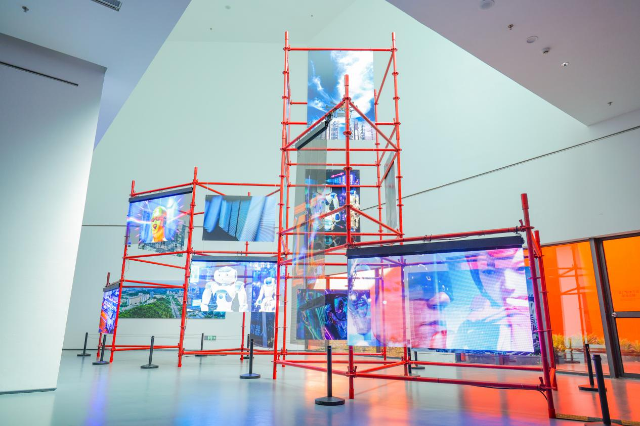 據介紹,現場呈現運用了大量新材料與新技術,不僅展現了靜態影像,策展人之一的胡國慶還通過AI制作視頻讓參展圖片動起來,讓科技和藝術深度融合。空間里的互動裝置等多元展陳方式,突顯科技與藝術的融合創新,可觀、可賞、可互動,能讓參觀者沉浸式體驗。