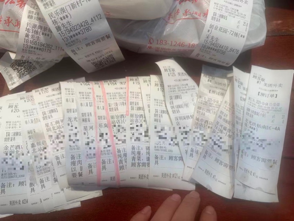 大量地址為附近酒店的外賣單。(圖源:商戶供圖)