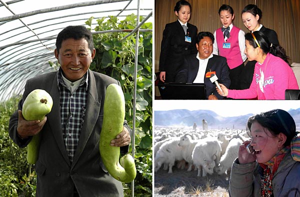 “阿里也有西瓜、蘋果?”聽了達娃扎西代表的介紹,在場的人無不感到驚奇。 面積34萬平方公里、人口僅8萬多的西藏阿里地區(qū)平均海拔5000米以上,因離“天”最近而被稱為“天上的阿里”。但因它寒冷缺氧、環(huán)境惡劣,長久以來又被稱為“生命禁區(qū)”。然而,阿里行署專員達娃扎西代表卻用事實告訴人們:如今,阿里與全國一樣發(fā)生了巨大變化。 聽說達娃扎西代表要向記者介紹“天上的阿里”,一些賓館工作人員也好奇地聚集過來。 “去年阿里地區(qū)農牧民西瓜、蘋果的收入就有100多萬元。”達娃扎西介紹,近年來阿里大力發(fā)展白絨山羊養(yǎng)殖、神山圣湖礦泉水生產、無公害果蔬種植,以及旅游業(yè)、特色優(yōu)礦產業(yè)開發(fā)等,去年地區(qū)生產總值突破14億元,比5年前增加了兩倍,農牧民人均純收入連續(xù)5年保持兩位數(shù)增長,去年達到2483元。 “你們看,這就是白絨山羊,一只羊的毛絨能賣2000多元,全地區(qū)1100多個示范戶光靠這‘軟黃金’去年總收入就有3億多元。”達娃扎西點擊著電腦上的一張張圖片介紹說,古格王國遺址、扎達土林風光、神山圣湖等古跡和自然美景也吸引著越來越多的游客。農牧民通過牦牛運輸、家庭旅館等方式也賺了不少“現(xiàn)票票”。 “我們阿里生存環(huán)境相對來說是有點苦,但在全國人民的關心幫助下,日子越過越有希望!边_娃扎西說,“隨著阿里機場的興建、新藏公路的改擴建等大型工程上馬,阿里會迎來更大的變化,群眾也將會有更多的致富機會。” “真是想不到,阿里竟然這么美,群眾也過上了好日子!睅酌e館工作人員嘖嘖稱奇。 聽到這話,達娃扎西高興地說:“我代表阿里人民歡迎大家來阿里觀光!” 右上圖:全國人大代表達娃扎西在介紹阿里發(fā)生的巨大變化。 右下圖:西藏阿里地區(qū)日土縣藏族牧羊女次仁珠吉放牧著被譽為能產“軟黃金”的白絨山羊(資料照片)。 左圖:西藏阿里地區(qū)普蘭縣農民歐珠在展示海拔3800多米的太陽能溫室種出的蔬菜(資料照片)。 |