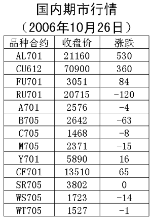26日國(guó)內(nèi)期貨市場(chǎng)鋁價(jià)漲幅最大,其余品種以盤(pán)整為主。