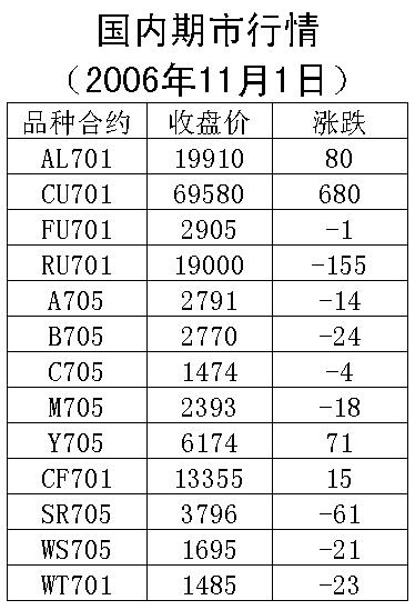 1日,國內期貨市場滬銅鋁、白糖上漲,其他品種則以下跌報收。