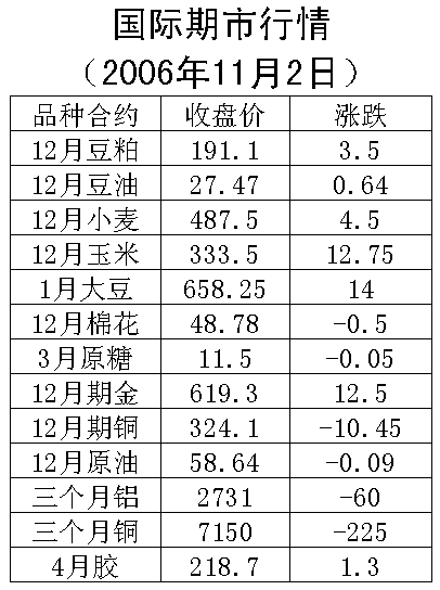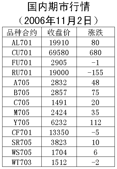 2日,國內期貨市場銅、膠下跌,其余品種上漲。