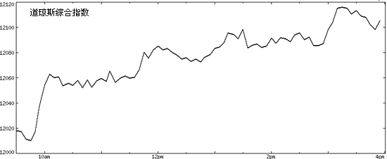 受公司并購消息的托舉,紐約股市道瓊斯指數6日終盤再次突破12000點關口,達到12105.55點,比前一交易日上漲119.51點。