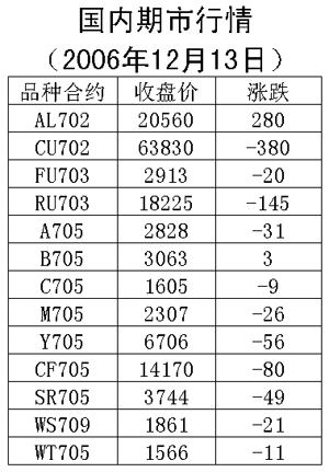 13日,國內期貨市場除鋁外各品種價格均出現下跌。