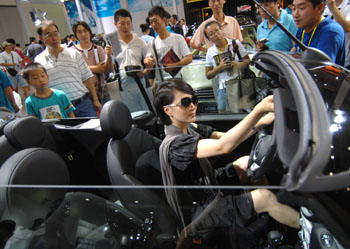 一位市民在大連第14屆國(guó)際汽車博覽會(huì)上試乘一輛汽車。新華社記者 姚劍鋒攝 | 福特汽車全球總裁艾倫·穆拉利剛剛在上月底訪問了中國(guó)。通用汽車總裁兼首席執(zhí)行官韓德勝12日又飛抵中國(guó)上海,并于13日與中國(guó)媒體會(huì)面溝通。