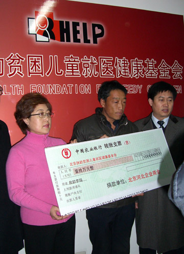 患兒李瑞的父親李貴樹接受捐贈。 | 總理的救助讓白血病患兒李瑞成了幸運娃娃。 19日上午,北京兒童醫(yī)院內(nèi)東南角的一間不起眼小屋里,李瑞的父親李貴樹接過了北京河北企業(yè)商會捐贈給北京扶助貧困兒童就醫(yī)健康基金會的10萬元。面對眾多媒體,老實巴交的他,激動地連聲說:“遇到了總理,我們的娃娃就有希望了。” 李貴樹的孩子李瑞是溫家寶總理在天津火車站邂逅的沒錢治病的一個白血病患兒。了解其病情后,總理立即安排他到北京兒童醫(yī)院就診。此事一經(jīng)報道,媒體、醫(yī)院、企業(yè)等頓時也將目光聚集在他身上。據(jù)了解,入院后,衛(wèi)生部迅速從天津調(diào)中國醫(yī)學(xué)科學(xué)院血液病醫(yī)院專家來京參與會診治療;各路媒體蜂擁采訪報道;患兒家鄉(xiāng)河北省張家口市的紅十字會秘書長專程趕到北京看望他。而繼總理捐獻(xiàn)一萬元后,政府部門、紅十字會、企業(yè)爭先恐后為其捐款已達(dá)30多萬元。 當(dāng)李貴樹接過10萬元的捐款后,他對記者坦言:“病房里像我們這樣的家庭挺多的。也不知道他們從哪里找錢來給孩子看病!北本┓鲋毨和歪t(yī)健康基金會的負(fù)責(zé)人向記者透露,白血病的治療費用在70萬至80萬元左右,即使城市的普通家庭出現(xiàn)一個白血病患兒,也很難負(fù)擔(dān)得起,許多人不得不賣房看病。 19日,北京兒童醫(yī)院血液科的病房已不讓陌生人探視,記者無從見到其他的患病兒童。醫(yī)院相關(guān)負(fù)責(zé)人告訴記者,最近太多人進(jìn)入病房,白血病患者免疫力非常低,醫(yī)生們擔(dān)心傳播病菌。其他孩子家長也怕孩子受干擾。 類似白血病兒童這樣的就醫(yī)難題背后,更多地折射出現(xiàn)今醫(yī)療體制的問題。 一是費用高。李貴樹告訴記者:“看病太貴了,僅查了一個血常規(guī)之后,就沒有錢再做2160元的腰穿檢查!币豁椦z查就要花費2160元,連大城市里普通家庭都會為之咋舌,更別提一戶農(nóng)民了。衛(wèi)生部三令五申降低檢查費用、降低醫(yī)用耗材費用,似乎對醫(yī)療機(jī)構(gòu)未產(chǎn)生太大影響。 醫(yī)保體系不完善也是一大難題。李貴樹說,自己全家加入了新型農(nóng)村合作醫(yī)療保險,可去年花掉6萬多元的醫(yī)療費用,只報銷了一萬二千多元。新型農(nóng)村合作醫(yī)療制度和城鎮(zhèn)居民基本醫(yī)療保險已在全國鋪開,可受補(bǔ)償份額、受益范圍、疾病種類等方面的限制,“一人看病、傾家蕩產(chǎn)”的情況在農(nóng)村并不鮮見。 再者,不健全的醫(yī)療救助體系也沒能讓大多數(shù)貧困家庭的患者得到救助。北京扶助貧困兒童就醫(yī)健康基金會自2003年6月成立以來,每年接受社會捐贈大約在100萬元左右,遠(yuǎn)遠(yuǎn)不能滿足貧困家庭患兒的就醫(yī)需求。基金會負(fù)責(zé)人對記者說:“我們想通過媒體對這一事件的關(guān)注,能呼吁社會關(guān)心更多的白血病患兒! 李瑞無疑是幸運的,可聚集在李瑞身上的眾多光環(huán)能讓其他孩子分享嗎?