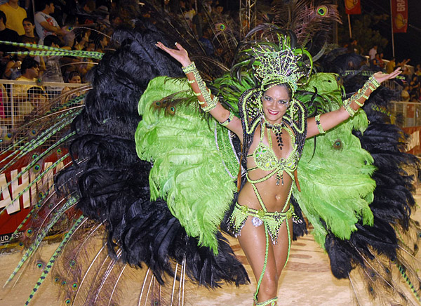 6日,在距離巴拉圭首都亞松森350公里的恩卡納西翁,巴拉圭狂歡節(jié)學(xué)校的成員參加狂歡節(jié)游行。恩卡納西翁被稱為巴拉圭的狂歡節(jié)之城,每年1月底至2月中旬都會(huì)舉行規(guī)模盛大的狂歡節(jié)活動(dòng)。
