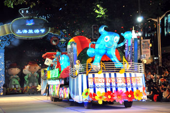 9月12日晚,上海世博會主題花車亮相上海淮海路。當日,上海旅游節正式開幕。上海旅游節是上海一年一度的全市性大型節慶活動,旨在通過觀光、休閑、娛樂、文體、會展、美食、購物等多種特色旅游產品和近百項活動,集中展示上海的風土人情。上海旅游節以“人民大眾的節日”為定位,至今已成功舉辦9屆,每年吸引超過800萬人次的市民游客參與其中。(資料照片) |