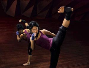 其具體形式是將拳擊、空手道、跆拳道、功夫,甚至一些舞蹈動(dòng)作混合在一起,即在激烈的音樂(lè)中,進(jìn)行一些拳擊和跆拳道的基本拳法和腿法練習(xí)。健身者在出拳、踢腿的過(guò)程中,隨著音樂(lè)揮動(dòng)雙拳,動(dòng)作剛勁有力,讓健身者盡情地發(fā)泄,盡情地出汗,并在不知不覺中減掉全身多余的脂肪。