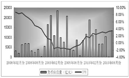 圖2:2008年1月-2010年8月中國貨幣供應(M2)與CPI走勢