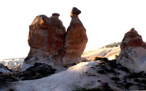 卡帕多奇亞最大的特點就是眾多聳立在平地上形狀奇特的小山峰,其外觀如石筍、似煙囪,不一而足,蔚為奇觀。它們是由數百萬年前三座火山噴發后散落的灰燼凝結,再經歷數千年風化和湖河雨水沖刷逐漸形成。