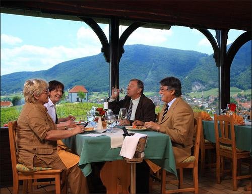 位于小丘之上的玻璃屋餐廳有200個座位,在那里用餐,視野絕佳,如波浪般的葡萄園在你的腳下云蒸霞蔚,高爾夫球道起起伏伏,柔嫩如地毯;真正的秀色可餐。餐廳本身的菜式出品就非常不俗,鮮蘋果燴鵝肝、秘制鴨腿、香煎小牛肉和羊肉(這些牛、羊都是自家農(nóng)莊里生產(chǎn)的哦)都是這里的招牌菜。配上誘人的奶酪,新鮮的果醬與甜品,當(dāng)然,還不能缺少酒莊精心推薦的搭配葡萄酒。如此一來,美食與美酒的完美結(jié)合,實(shí)在難以抗拒。除了打球的游客,當(dāng)?shù)厝艘矏墼诖撕团笥选⒓胰硕冗^一個浪漫而愉悅的中午或晚上。自開業(yè)以來,金山玻璃屋餐廳以其精湛的烹調(diào)技術(shù)和優(yōu)質(zhì)的服務(wù)贏得了游客和當(dāng)?shù)厝说囊恢驴诒蛔u(yù)為斯洛文尼亞最高品質(zhì)餐廳。