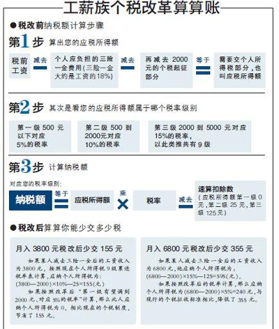 月入6800元稅改后少交355元
