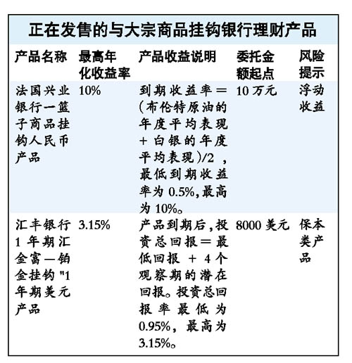 近期國際市場黃金白銀等大宗商品價格“坐上過山車”,多家銀行推出與黃金等商品掛鉤的理財產(chǎn)品,部分產(chǎn)品的年化最高收益為10%。