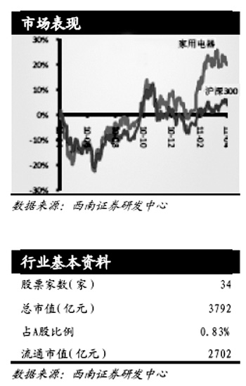 中金公司表示:前期股價(jià)從高點(diǎn)回落了10%左右,市場已基本消化了對一季報(bào)利潤的較高預(yù)期和對二季度銷售增速趨勢的擔(dān)憂。我們?nèi)匀豢春眉译姾罄m(xù)表現(xiàn),待6至8月旺季銷售進(jìn)一步確認(rèn),半年報(bào)將會穩(wěn)固市場對家電盈利能力的信心。二季度可重點(diǎn)關(guān)注利潤持續(xù)高增長的格力、海爾、海信。其中,格力公開增發(fā)有望二季度啟動,海爾資產(chǎn)整合順利進(jìn)展,美的、蘇泊爾、華帝、美菱目前股價(jià)也具中長期投資價(jià)值。四川長虹也可能存在提示組織構(gòu)架改革、盈利能力好轉(zhuǎn)帶來的交易性機(jī)會。