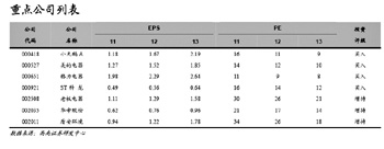 東方證券建議關(guān)注具備市場份額、品牌和渠道優(yōu)勢,增長確定的白電龍頭企業(yè)。如空調(diào)龍頭、具有農(nóng)村市場優(yōu)勢的格力電器,綜合白電龍頭企業(yè)美的電器;洗衣機(jī)平臺整合后份額提升明顯、協(xié)同效應(yīng)逐步體現(xiàn)的小天鵝A以及家電下鄉(xiāng)銷售占比最高的冰箱產(chǎn)品龍頭青島海爾。同時(shí)關(guān)注康盛股份、禾盛新材、毅昌股份等能夠轉(zhuǎn)嫁成本壓力,維持盈利能力的上游零部件企業(yè)。