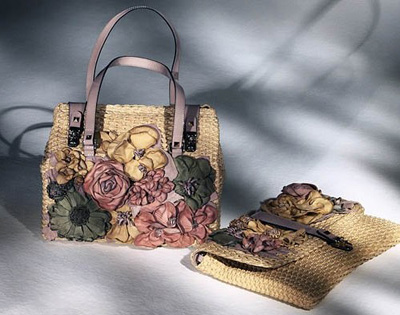 手工立體花朵裝飾的Valentino手袋是高超手工藝與相異材質混搭碰撞的藝術品。皮質手工花朵,經過復雜程序和工藝的加工制作,花蕊與花瓣都生動逼真、惟妙惟肖;草編手拿包搭配立體皮質花朵與漆皮搭扣,輕松把玩各種材質的精微變化,游離于硬朗與溫柔之間。