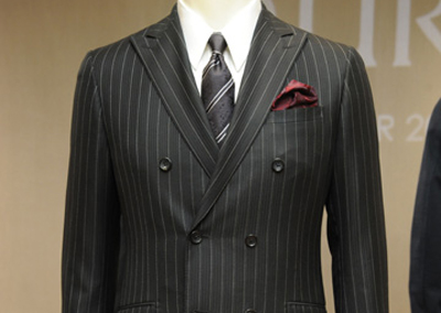 以黑色、灰色及灰藍色作為整個系列的基調,選用非傳統面料的炭灰色雙排扣西裝是這一個系列的亮點,以相同色調的襯衣哲學,配以一件灰藍色襯衫,突顯穿衣者的獨特品味。設計師也細意為男士準備了羊毛面料的外套跟背心外套的配搭,隨意換上一件休閑襯衫、羊毛領呔及長褲,就已經散發出高雅的味道。翻領上的鈕扣孔及拉錬,包含了結合日本革新科技及歐洲經典設計的精神,由格仔所組成的條紋,已經可以感受到男士穿著時的時尚魅力。