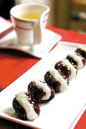 老板娘對(duì)于食材特別挑剔,如果碰不上好食材寧愿不做。像“心太軟”,就是在紅棗里面夾著糯米,紅棗必須要用蘋果棗,才能個(gè)頭大而且香甜。這道招牌甜品,“唇紅齒白”就是它的最好寫照,口感飽滿而不膩,一口一個(gè),就像在吃一粒QQ彈牙的紅棗。