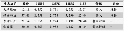 設備制造商的復蘇有賴于風電場的發展,我們看到風電場和風機制造商所面臨的形勢日益分化。對風機制造商而言,我們認為其產品毛利率和銷售均價將在2011、2012、2013年進一步下滑15%、11%、4%,他們仍然在間接地為風電場的運營資金提供融資。我們預計在2012年中期之前這些企業的基本面難以企穩,因此目前不建議買入設備股。