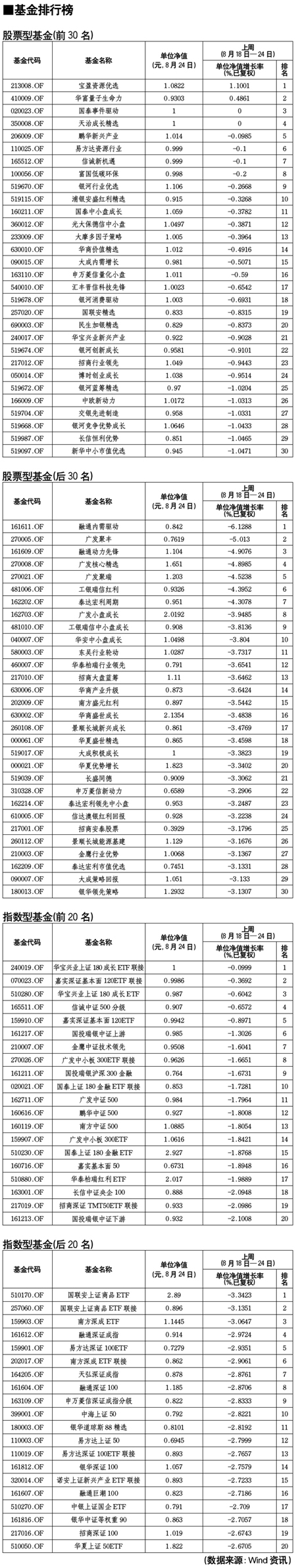 股票型基金排行榜[2011-08-26]