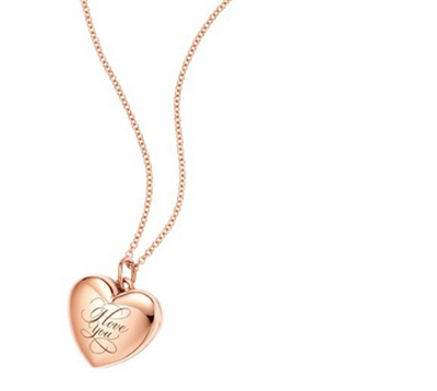 18K玫瑰金心形吊墜上刻印有柔美的“I Love