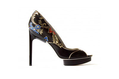 Jason Wu(吳季剛)發布最新2012秋冬系列鞋履,本季設計師帶來濃厚的東方色彩,西方的高跟鞋型,配上黑底鮮色刺繡,如東方女性的韻味般盡現人前。再來就是織錦,金珠的設計,將高貴與華風混而為一。