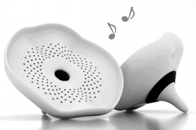這組名為 Lotus 的玩意,為出自于國外設計師 Lim Loren 點子;外觀彷彿一片飄浮在水面上的蓮花荷葉,甚至感覺旁邊會隨著音樂節奏泛起一陣陣水波紋,葉面表面上更可見到無數細小的發聲孔,而音量調整器則配于背面黑圈上,光是外觀就令人印象深刻。