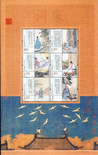 中國郵政定于2012年8月31日發行《宋詞》特種郵票1套6枚,這是繼2009年引起集郵市場轟動的《唐詩三百首》郵票之后,又一套多媒體票,這套郵票是以“宋詞”為載體,通過現代數碼科技彰顯傳統文化的完美結晶。