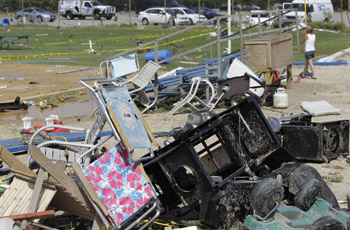2012年9月8日,一場龍卷風當天襲擊了紐約市沿海地區,在美國紐約皇后區的一個沖浪俱樂部,受災地區一片狼藉。新華社/美聯 |