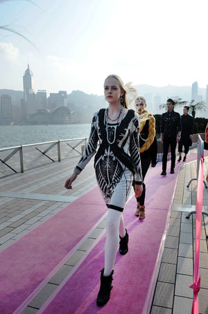 近日,大型時裝匯演“世界時尚天橋2012香港”在香港尖沙咀海濱長廊上演。此次走秀天橋全長約3公里,340余名模特以維多利亞港景色為背景走秀,創造了新的“全球最長時尚天橋”吉尼斯世界紀錄。