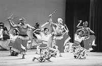 舞臺上的演出接近尾聲時,阿迪又拉著我提前走出大棚,在門外露天劇場的水泥看臺上找了個好位置。在這里上演的節目更精彩。男演員赤著腳,邊舞邊走過一片用火燒熱的碎石。每次通過滾燙的石子路時,還把一大把火絨撒到腳下,引起一團大火,把整個人包在當中。每看到這驚險的場面,觀眾便爆發出一陣尖叫聲,接著是熱烈的掌聲。只有阿迪不動聲色地喝著手里的飲料,估計這節目他已經看了無數次了。