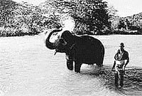 下午,驕陽似火,好在康提近郊的馬哈維利河水不時把涼意送到人的心里。正午過后,從清晨開始工作了大半天的大象們來到河邊,隨著主人的吆喝聲在水里翻著身,讓主人用椰子殼和肥皂幫它們沖刷掉身上的泥污,享受一天中最快活的時光。碰到游人走近,牧象人還會讓大象從河里站起身,沖人行禮,用鼻子吸起水來,像洗淋浴一樣噴到自己背上。