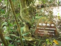 在雨林區,所到之處盡是奇形怪狀的植物,科研人員和景區規劃者們細心地為雨林中的花草樹木或立或掛地制作了寫有植物中文名和拉丁文名的介紹性標牌,方便游人與熱帶植物“親密接觸”。我默默地望著從來寡言的樹和花草,心想,如果時間允許,讓我系統地觀察、學習它們,哪怕能隨口叫出它們的名字,而非走馬觀花般一逛而過該有多好。