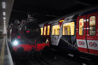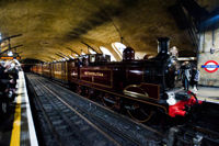 隨著夜色中的一聲汽笛,一輛19世紀蒸汽機車拉著維多利亞時代的木制車廂駛入倫敦地鐵穆爾蓋特車站,白色蒸汽從紅色車頭上冒出來,煤氣味在空中彌漫,這一幕似乎把人們帶回到了1863年。那一年1月9日,倫敦開通了世上第一條地鐵線路。