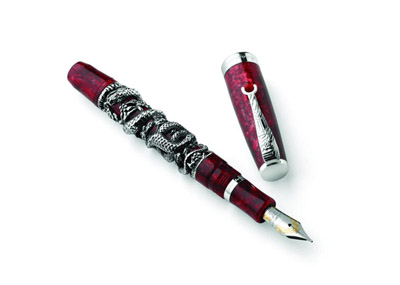 這一系列包括純銀鋼筆和純銀圓珠筆各888支,以及18K黃金的鋼筆和圓珠筆各888支。筆桿上盤踞的蛇以壓鑄工藝制成,造型栩栩如生。