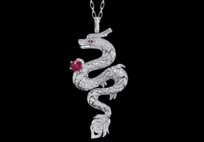 系列中的項鏈格外引人注目,以18K白金精心雕琢而成,鑲有總共超過21克拉的鉆石,并在鳳尾鑲嵌兩顆梨形紅寶石,可逆時針伸展90度的羽翼更顯出鳳凰即將一飛沖天的姿態。King吊墜刻畫出無所不能的龍的風采,其可移動的身體部分表現出龍的活靈活現。Queen吊墜則捕捉了鳳的強勁而優雅的姿態,可輕微活動的翅膀更使這款珠寶顯得靈動。這兩款吊墜堪稱是全球限量版高級訂制系列的巔峰之作,鑲滿鉆石的King和Queen吊墜,以晶瑩的寶石描繪出龍的王者風范和鳳凰的瑰麗華貴。