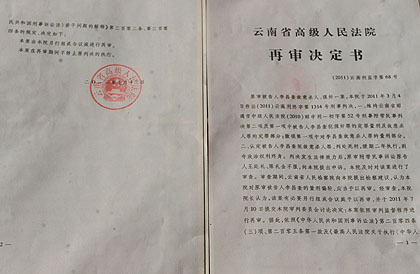 7月13日,云南省高院啟動李昌奎案再審程序,再審決定書已送達受害者家屬。圖為《云南省高級人民法院再審決定書》。新華社記者