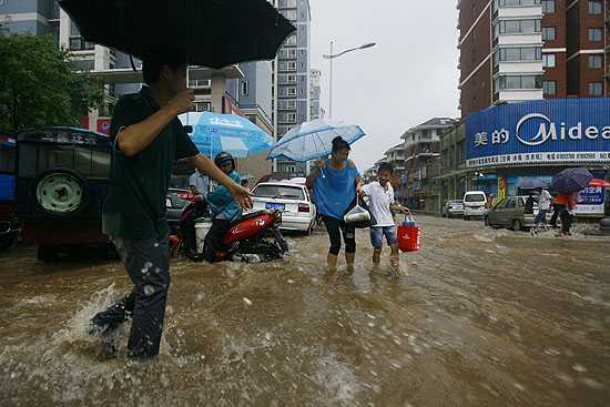 圖為湖北省武漢市近期遭受大暴雨襲擊的情景。新華社發 |