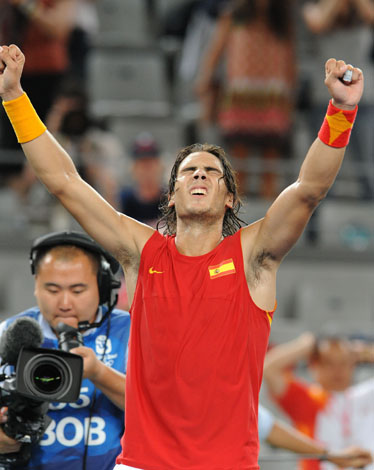 8月15日,納達爾在慶祝勝利。