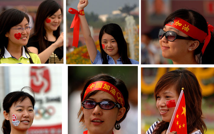 漫步北京街頭,不時可見北京市民、游客手中的國旗、臉上的貼紙,他們用這種時尚的方式為中國運動員加油、為奧運喝彩。