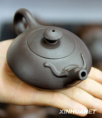 這是1月30日在北京大柵欄老字號廣德樓拍攝的一款牛頭紫砂小壺,這款壺造型生動可愛,受到顧客青睞。